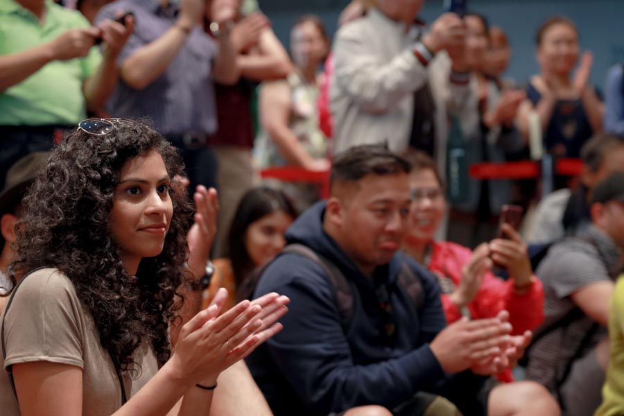New Zealanders applaud as they watch Chinese acrobatic performances at the Te Papa Museum in Wellington on Feb 9, 2019. [Photo/Chinaculture.org]