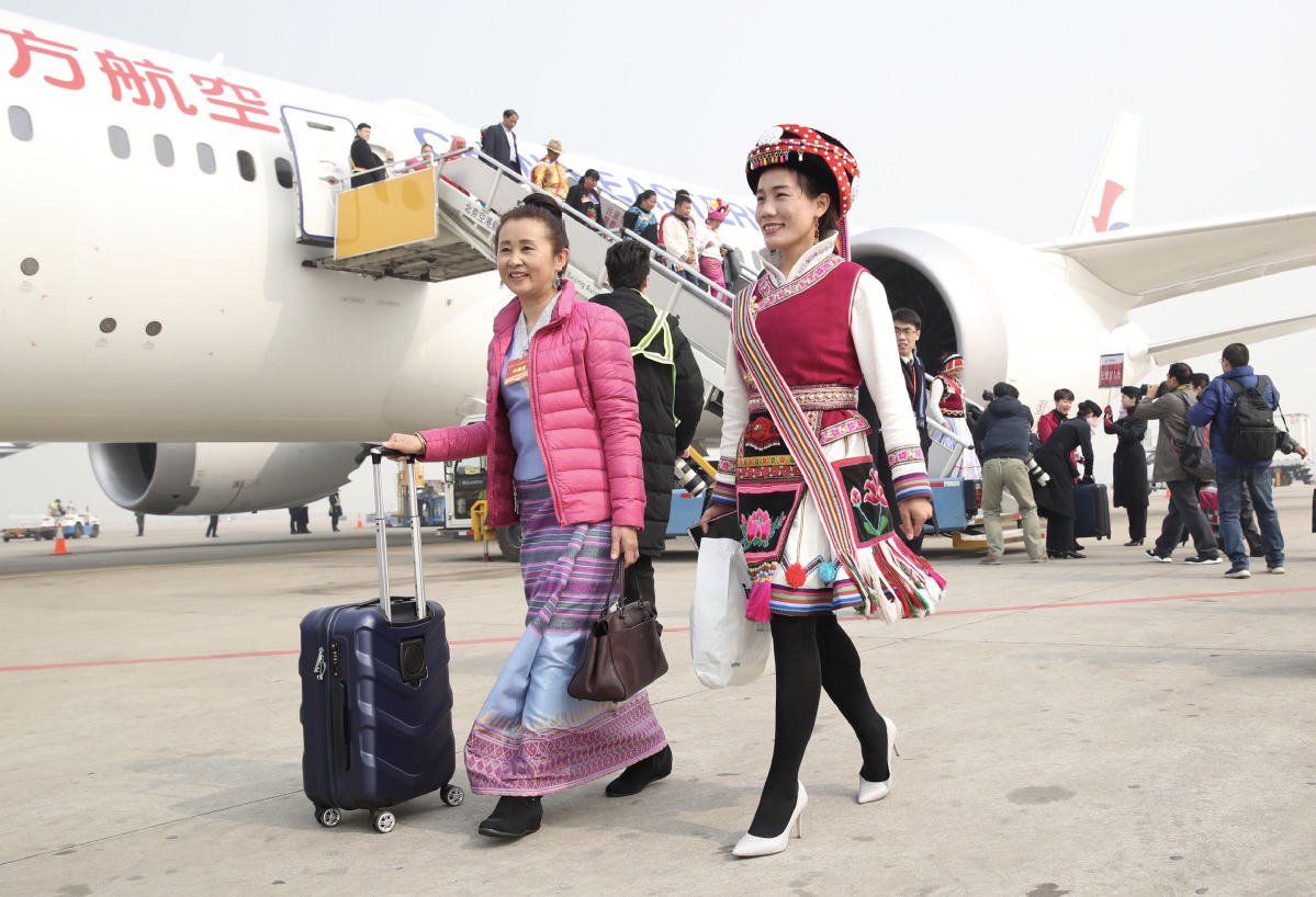 Deputies to the 13th National People's Congress (NPC) from Southwest China's Yunnan province arrive in Beijing, capital of China, March 2, 2019. The second session of the 13th NPC will open on March 5. [Photo/Xinhua]