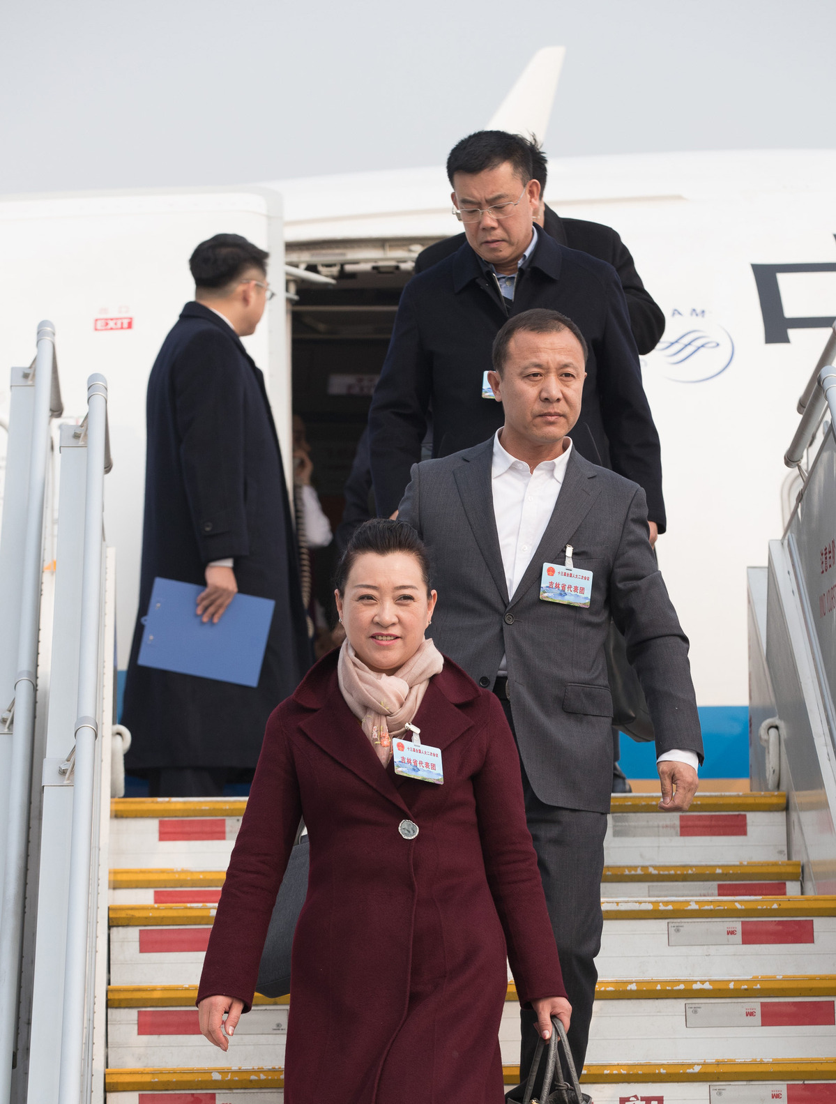 Deputies to the 13th National People's Congress (NPC) from Northeast China's Jilin province arrive in Beijing, capital of China, March 2, 2019. [Photo/Xinhua]
