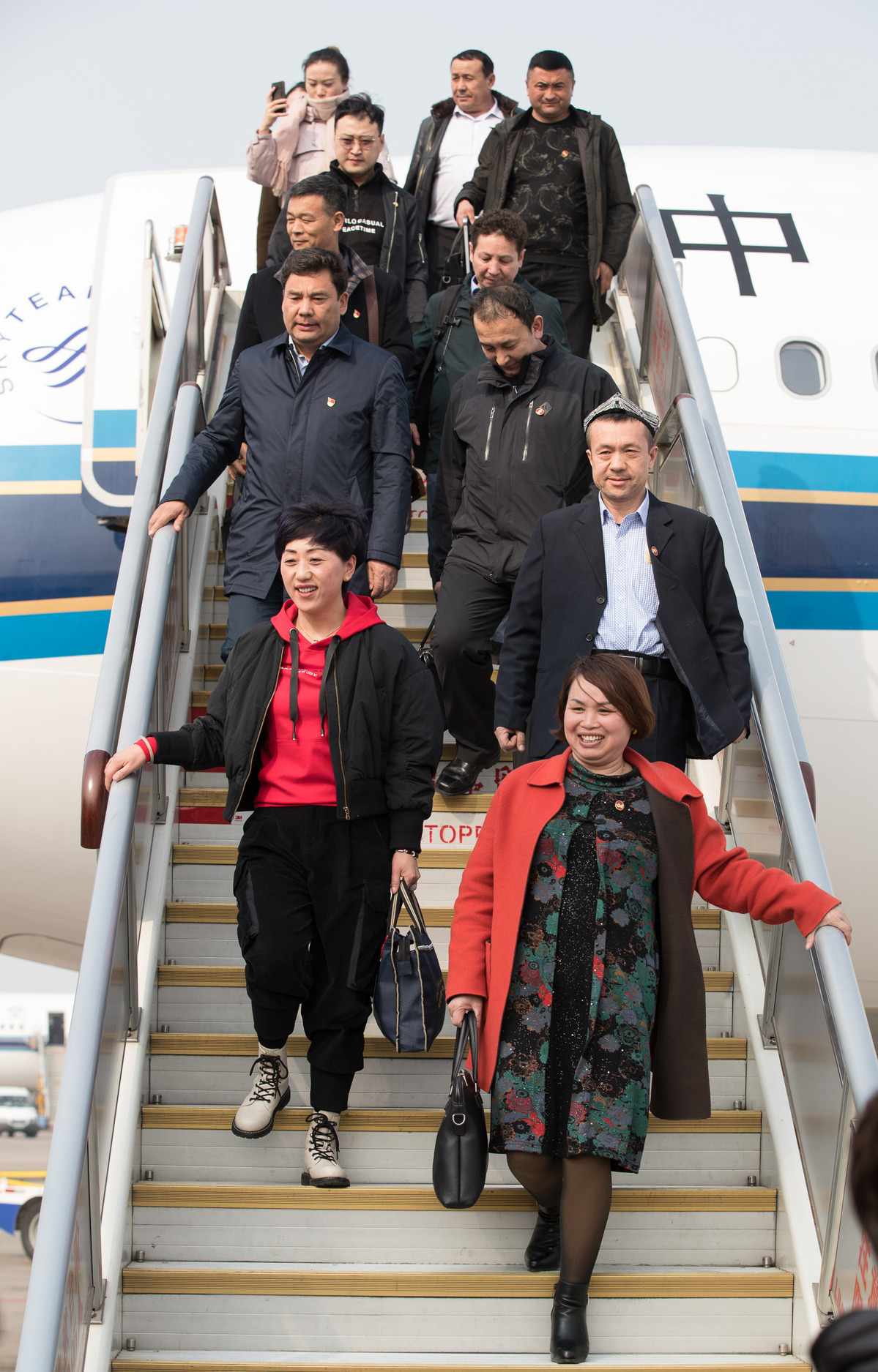 Deputies to the 13th National People's Congress (NPC) from Northwest China's Xinjiang Uygur autonomous region arrive in Beijing, capital of China, March 2, 2019. [Photo/Xinhua]