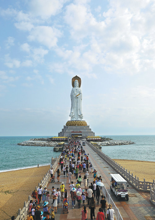 The Nanshan scenic area, featuring a statue of Buddha Avalokitesvara or Guan Yin, in Sanya, is among top tourist destinations in Hainan. [Photo provided to China Daily] |