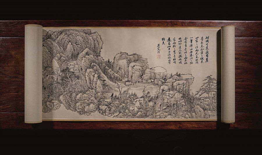 It took Qian two months to complete A Landscape Inspired by Four Great Painters of Yuan, a five-meter-long scroll which pays tribute to his mentors, the four master artists of the Yuan Dynasty (1271-1368): Zhao Mengfu, Huang Gongwang, Ni Zan and Wang Meng. It was gift to his brother Qian Weiqiao.