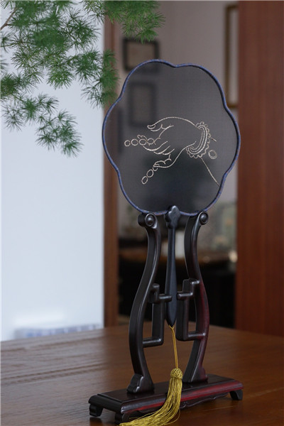 One of Liu's embroidered fans. [Photo provided to chinadaily.com.cn]