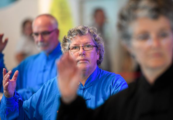 Local tai chi enthusiasts practice tai chi during the Chinese Community Stage Festival at Museum of New Zealand in Wellington, New Zealand, March 9, 2019. The Museum of New Zealand held the Chinese Community Stage Festival event on Saturday to celebrate the 2019 China-New Zealand Year of Tourism. [Photo/Xinhua]