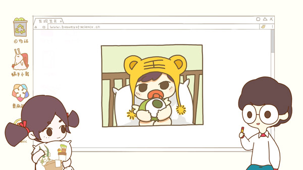 Meimei (left) and Keke in cartoons on science. [Photo provided to China Daily] |