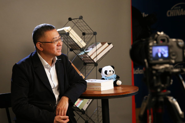 Lyu Huanbin, director of Hunan Broadcasting System, one of China's most popular provincial broadcasters, talks to China Daily in downtown Beijing on March 8. [PHOTO BY WU XIAOHUI/CHINA DAILY] |