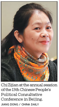 Chi, a member of the 13th Chinese People's Political Consultative Conference National Committee, is considered one of the country's most influential contemporary writers. But she maintains a relatively low profile. Chi does not use social media, including WeChat, the popular messaging app.
