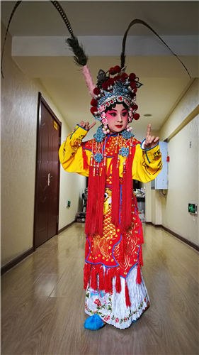 "She has a good voice for Peking Opera," said her 71-year-old singing tutor, Xing Huizhu, a famous Peking Opera actress in the province. "More importantly, she always diligently practices and can quickly understand what I say."