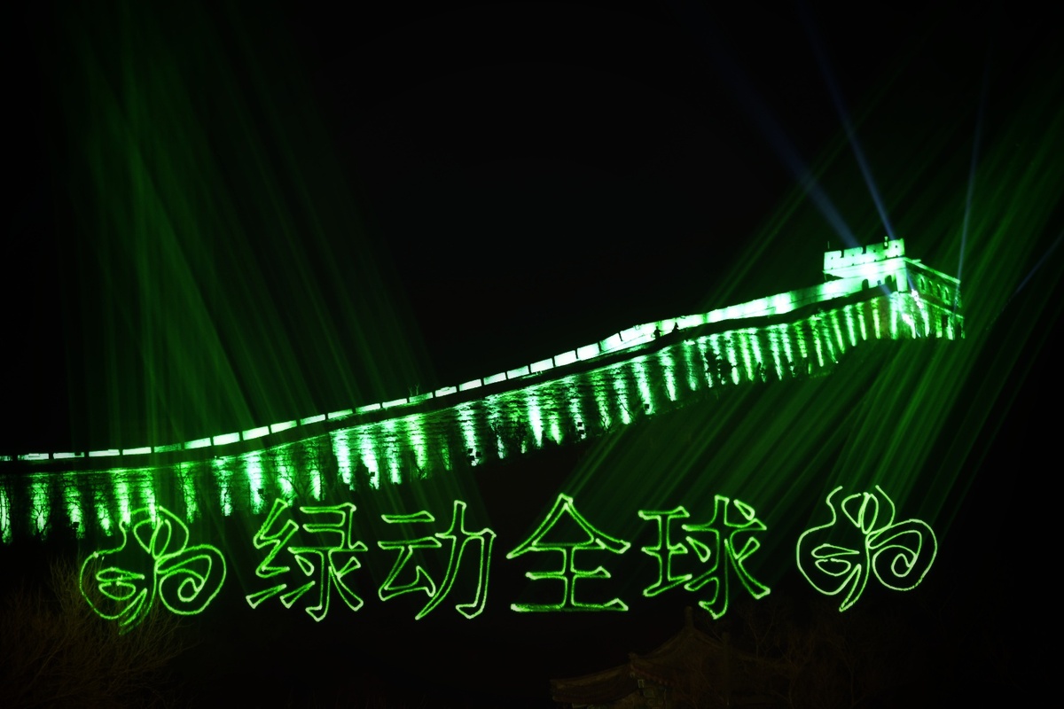 The Great Wall turns green to celebrate St Patrick's Day on March 17, 2019, in Beijing. [Photo by Zhang Xingjian/chinadaily.com.cn] |