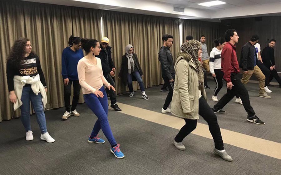 Moroccans practice Chinese kung fu at the China Cultural Center in Rabat, capital of Morocco, March 9, 2019. Kung fu master Yang Zhen taught nearly 50 martial arts lovers at the event, accompanied by a briefing on approaches, the history and current status of the age-old practice. [Photo/Chinaculture.org]