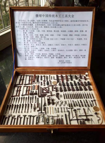 In early 2016, he came up with idea of making a set of miniature farm equipment. In order to do so, he traveled to the countryside of Hanchuan six times to measure the size of various traditional farm tools and take photos. Then he spent 18 months working at his desk for more than 8 hours every day, and finally built a miniature model of 100 farm tools. The 100 models were packed into a wooden box about 40cm long, 30cm wide and 78cm high. This wooden box has become a miniature model museum of farm tools which can be carried in one hand.