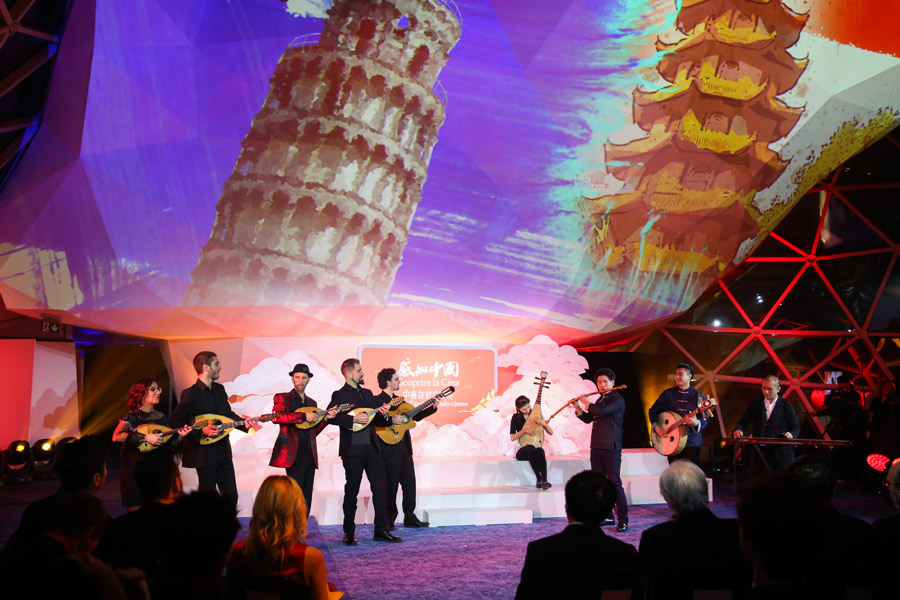 Performers from China and Italy play musical instruments during a gala marking the friendship between China and Italy in Rome, Italy, March 21, 2019. [Photo/Xinhua]