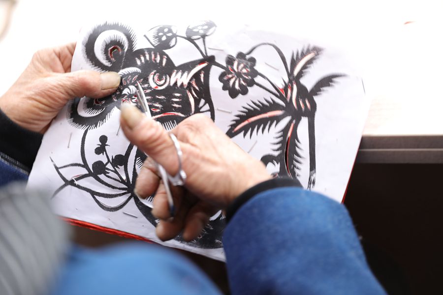 A woman makes a paper-cutting on March 28, 2019, in Fengning Manchu autonomous county, Hebei province. [Photo by Fu Rui/chinadaily.com.cn]