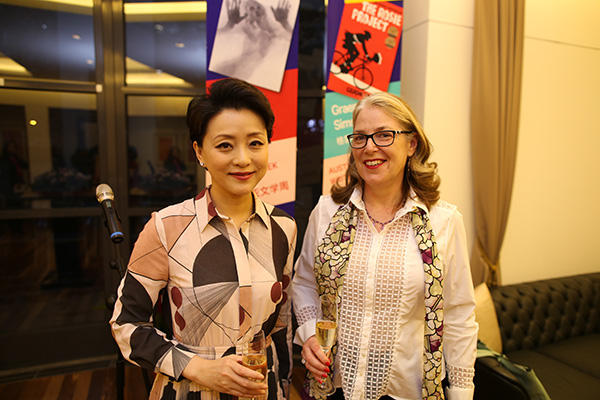 TV hostess Yang Lan (left) and Australian Ambassador to China Jan Adams attend a ceremony marking the start of Australian Writers Week at the Australian embassy in Beijing on March 20.[Photo provided to China Daily] |