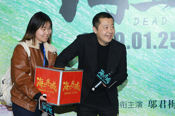 Executive producer of Dead Pigs, Jia draws a ticket at the premiere of the film in Beijing in January. [Photo provided to China Daily] |