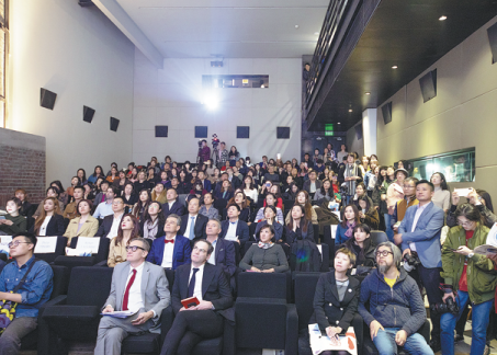 Officials from the French embassy in China, artists from China and France, and people from the media attend a promotional event for the 2019 Croisements Festival on April 11. [Photo provided to China Daily] |