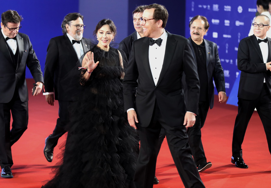 Actors from The Eleventh Chapter pose for photos on the red carpet for the closing ceremony of the ninth Beijing International Film Festival in Beijing, April 20, 2019. [Photo by Jiang Dong/chinadaily.com.cn]