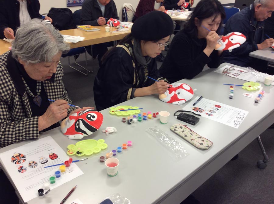 Japanese visitors learn to paint Chinese Peking Opera masks at the China Cultural Center in Tokyo on April 2, 2019. [Photo/Chinaculture.org] |