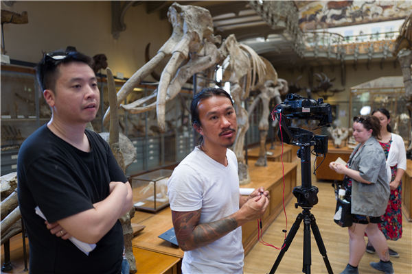 The program’s production crew works inside the French National Museum of Natural History. [Photo provided to China Daily] |