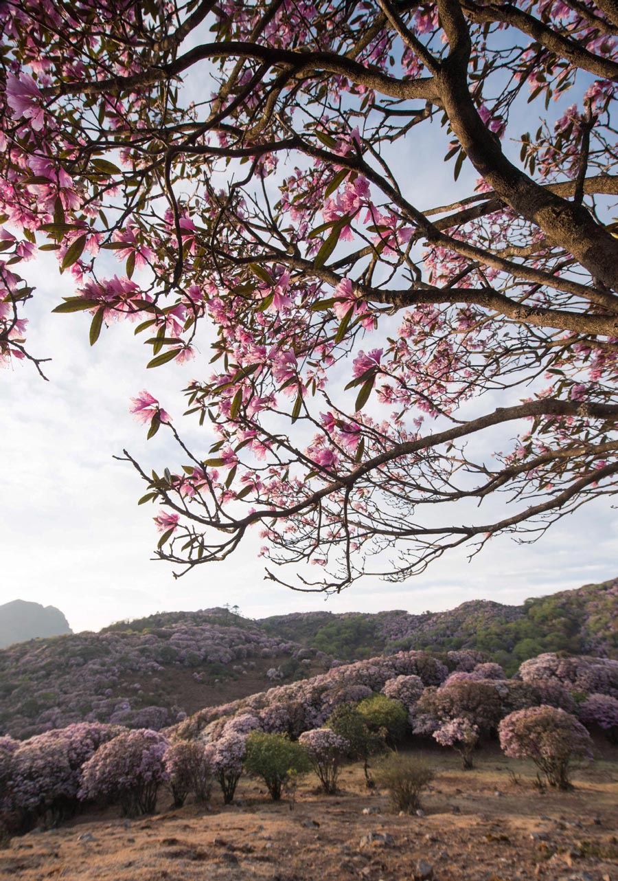 Blooming azaleas at Longtou Mountain in Yuanbian county, Panzhihua city in Southwest China's Sichuan province, on April 24, 2019. Every February to May, more than 100,000 mu (6,600 hectares) of wild azaleas come to full bloom in the place, attracting visitors nationwide. [Photo/Xinhua]