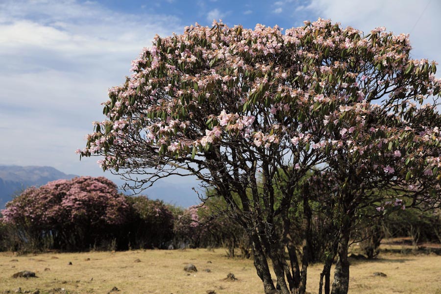 Blooming azaleas at Longtou Mountain in Yuanbian county, Panzhihua city in Southwest China's Sichuan province, on April 24, 2019. [Photo/Xinhua]