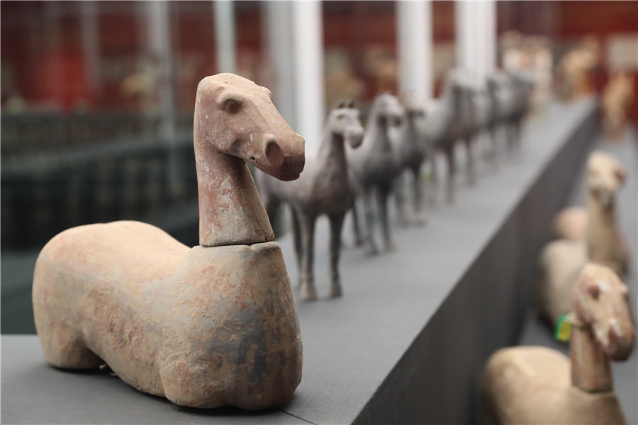 Hundreds of Chinese cultural relics repatriated from Italy finally are made available for public viewing on Wednesday at the National Museum of China in Beijing. [Photo by Jiang Dong/China Daily] |
