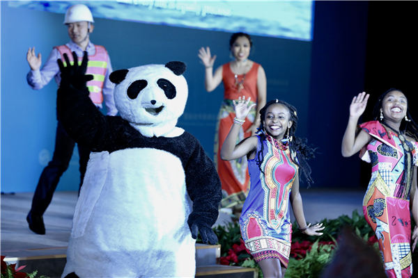 Young artists from Africa and China stage a performance at the Thematic Forum on People-to-People Connectivity in Beijing on Thursday. [Photo by Zhu Xingxin/China Daily] |
