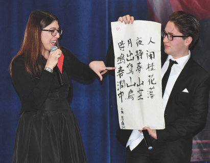 Turkish college students celebrate Spring Festival in Istanbul in February 2018. One of them wrote in Chinese calligraphy a poem which was created in the Tang Dynasty (618-907). [Photo by He Chanling/Xinhua] |