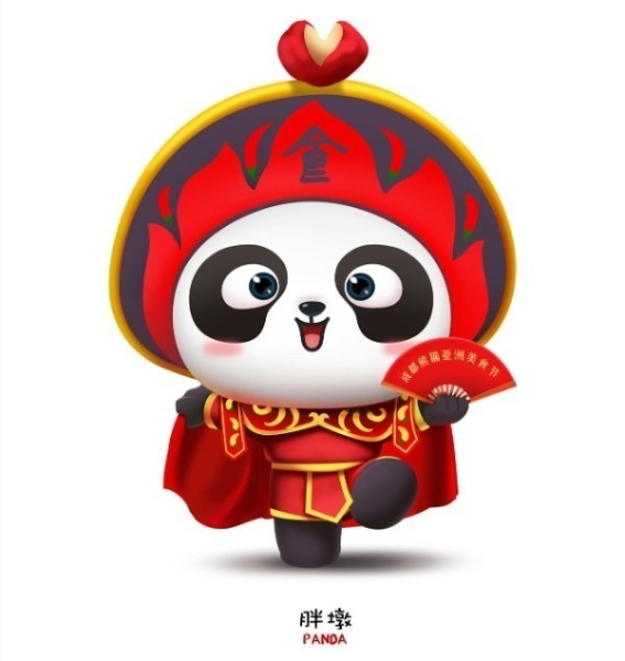 The Chengdu festival's mascot is a giant panda, named after the homophonic pangdun (cute fatty) of PANDA. It brings together chili and pepper into a Sichuan-inspired design. The logo uses red and yellow as its base for what is a bright, lively representation of Sichuan culture.
