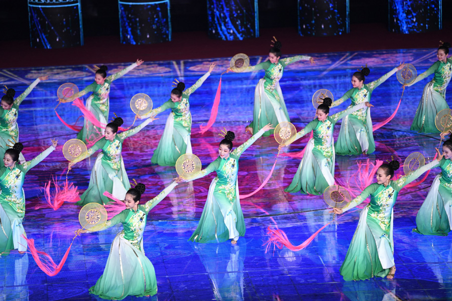 Actors perform at the opening ceremony of the 2019 International Horticultural Exhibition in Beijing's Yanqing district on April 28. The horticultural expo officially welcomes visitors starting April 29. Its huge collection of plants and flowers, eye-catching pavilions and green development concepts will enthrall visitors for 162 days. [Photo/Xinhua]