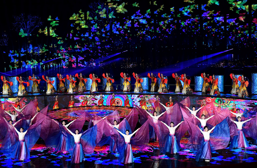 Actors perform at the opening ceremony of the 2019 International Horticultural Exhibition in Beijing's Yanqing district on April 28. The horticultural expo officially welcomes visitors starting April 29. Its huge collection of plants and flowers, eye-catching pavilions and green development concepts will enthrall visitors for 162 days. [Photo/Xinhua]