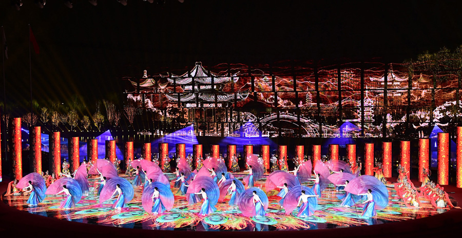 Actors perform at the opening ceremony of the 2019 International Horticultural Exhibition in Beijing's Yanqing district on April 28. The horticultural expo officially welcomes visitors starting April 29. Its huge collection of plants and flowers, eye-catching pavilions and green development concepts will enthrall visitors for 162 days. [Photo/Xinhua]