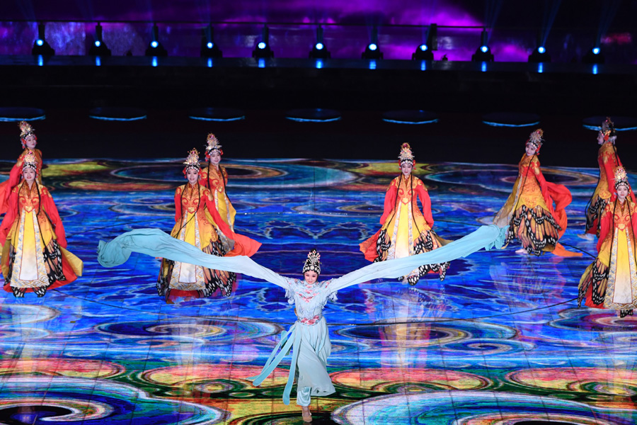 Actors perform at the opening ceremony of the 2019 International Horticultural Exhibition in Beijing's Yanqing district on April 28. The horticultural expo officially welcomes visitors starting April 29. Its huge collection of plants and flowers, eye-catching pavilions and green development concepts will enthrall visitors for 162 days. [Photo/Xinhua]