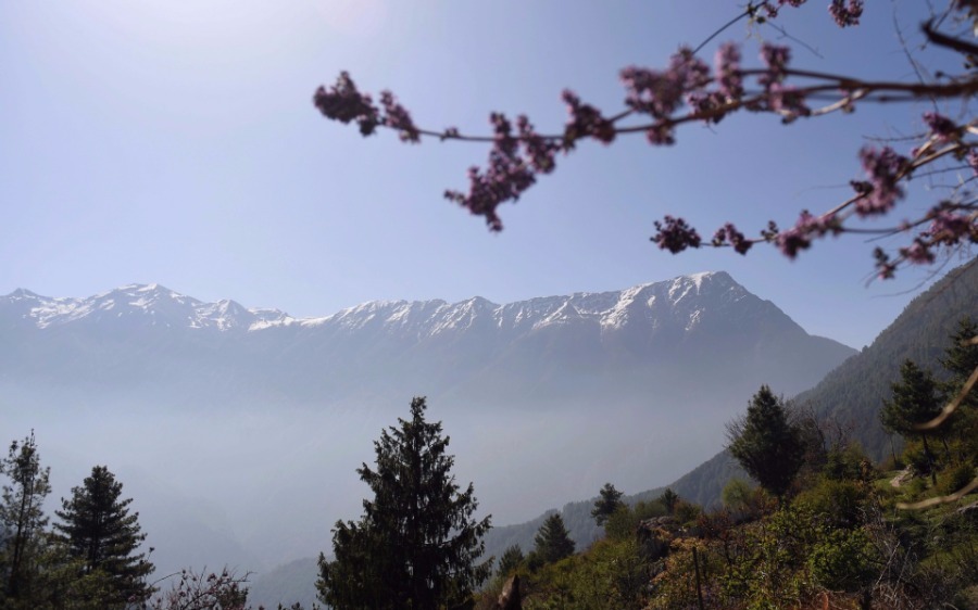 The vast drop in altitude in Gyirong county, known as the "backyard garden of Mount Qomolangma", makes the ecological environment unique, with crystal-clear lakes and towering mountain peaks creating a mesmerizing scene. Mount Qomolangma is known as Mouth Everest in the West. [Photo/Xinhua] |