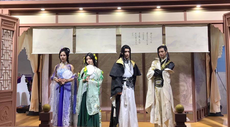 Fans dress up like their favorite characters in the popular computer game Ni Shui Han, a martial arts epic. [Photo by Xu Fan/China Daily]