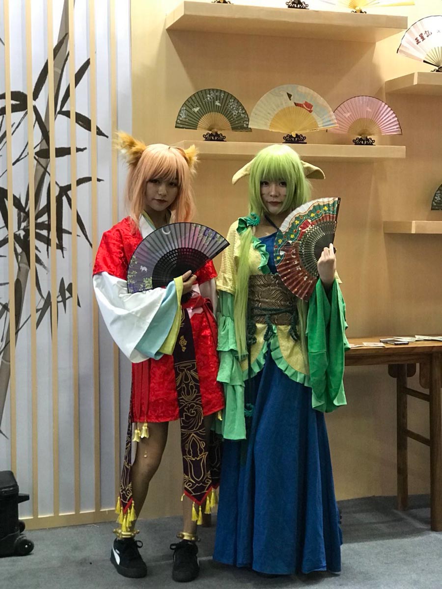 Two young women wrapping up costumes of the protagonists of Huyao Xiaohongniang (Fox Matchmaker), a popular animated series available on Tencent’s animation and cartoon site, the largest in China. [Photo by Xu Fan/China Daily]