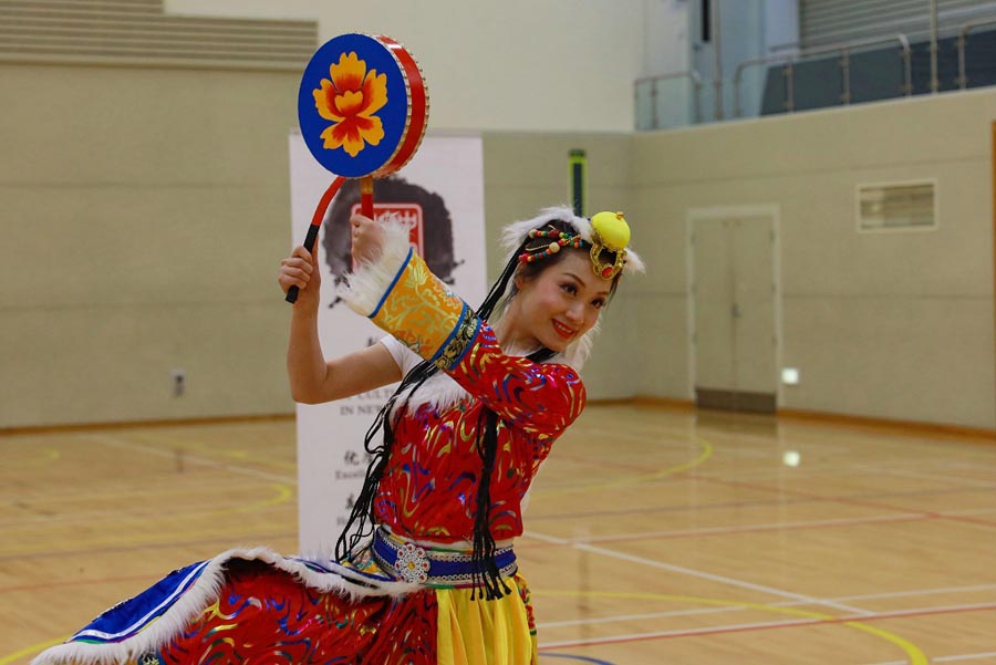 Chinese dancer Chen Yao performs a Tibetan drum dance in Wellington, April 28, 2019. The China Cultural Center in New Zealand is one of the organizers of the four-hour event in celebration of International Dance Day. [Photo/Chinaculture.org]