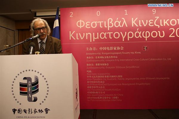 Greek director Kostas Ferris delivers a speech at the Chinese Film Festival 2019 in Athens, Greece, on May 5, 2019. Athens hosts the Chinese film festival this week as part of efforts to further strengthen Sino-Greek cultural ties. [Photo/Xinhua] |