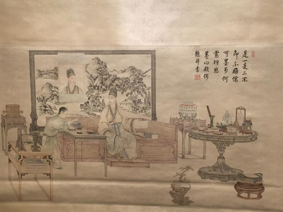 Shi Yi Shi Er Tu, a highlighted exhibit of the ongoing display, which shows Emperor Qianlong's pursuit of literati style. [PHOTO BY WANG KAIHAO/CHINA DAILY] |