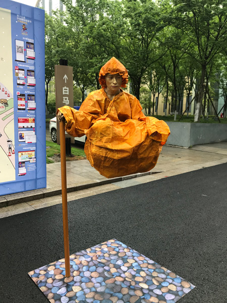 An artist performs as a pensive monk. [PHOTO PROVIDED TO CHINA DAILY] |
