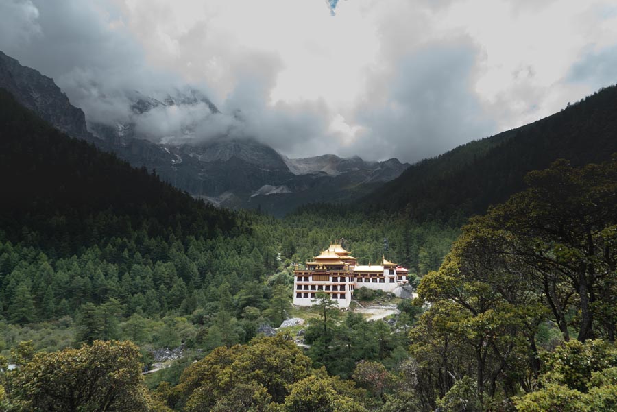 The Chonggu Monastery in Yading National Park in Daocheng county, Sichuan province. [PHOTO BY D J CLARK/CHINA DAILY] |