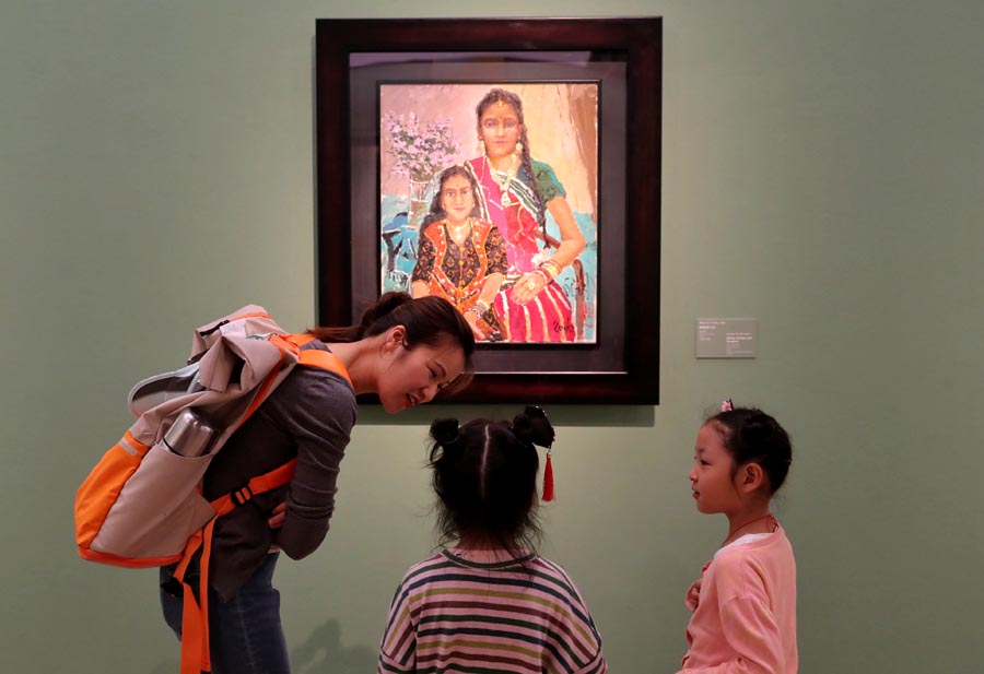 Visitors take in an exhibit at the National Art Museum of China in Beijing on Friday ahead of next week's Conference on Dialogue of Asian Civilizations. [PHOTO BY JIANG DONG/CHINA DAILY] |