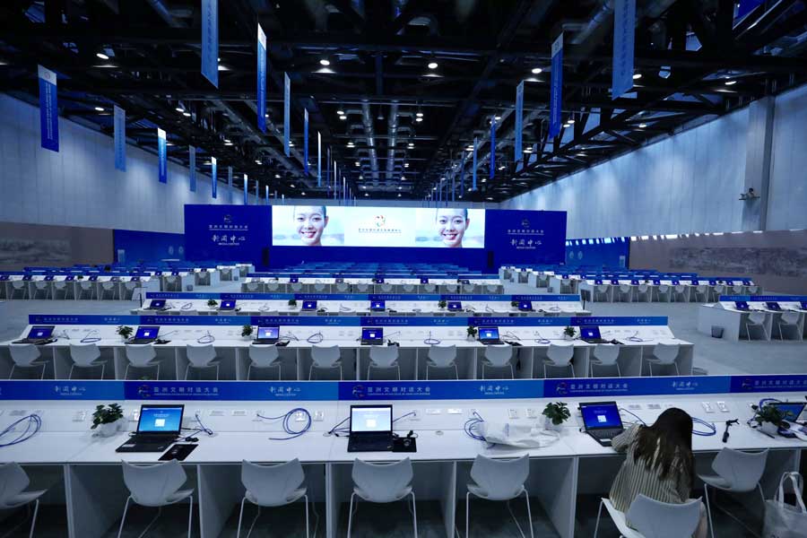 The media center of the Conference on Dialogue of Asian Civilizations (CDAC) starts trial operation on May 12, 2019. [Photo by Zhu Xingxin/chinadaily.com.cn]