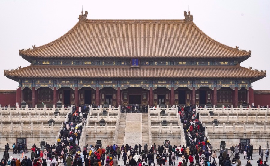 Visitors tour around the Forbidden City, Feb 5, 2019. [Photo/Xinhua]