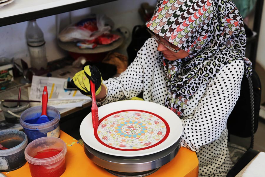 A craftswoman works on decorative porcelain in Kutahya, Turkey, on April 25, 2017. [Photo/Xinhua]