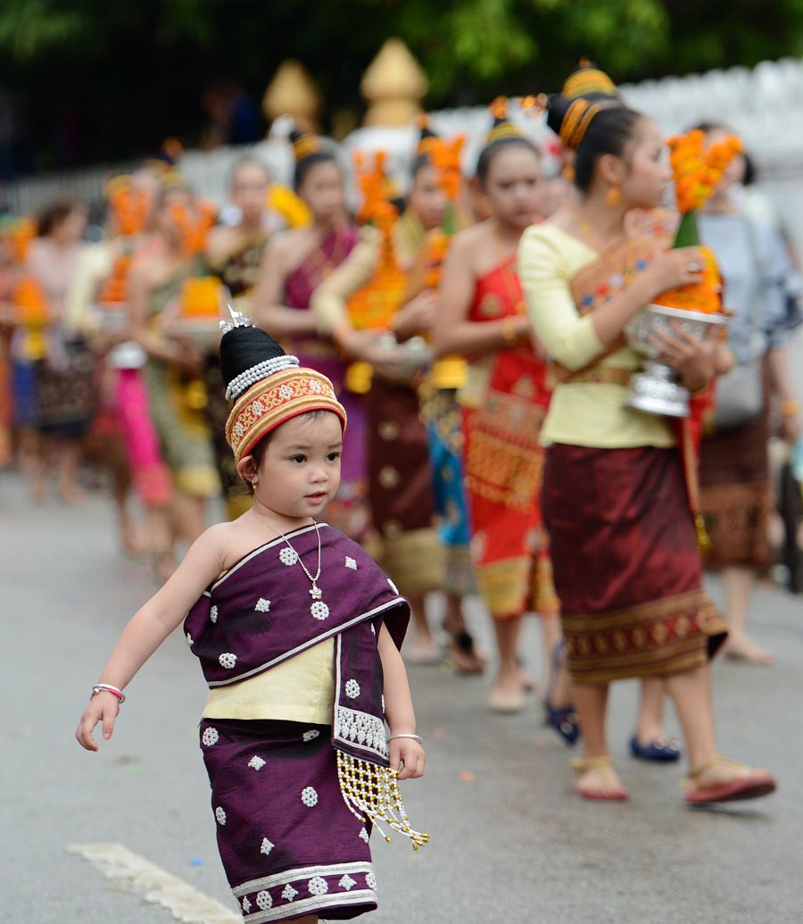 A girl dressed in traditional clothes walks along a street in Luang Prabang, Laos, on April 15 last year. [Photo/Xinhua]