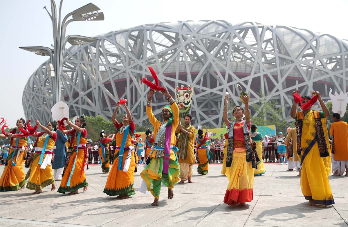 The Indian troupe participates in the parade. [Photo by Zou Hong/China Daily]