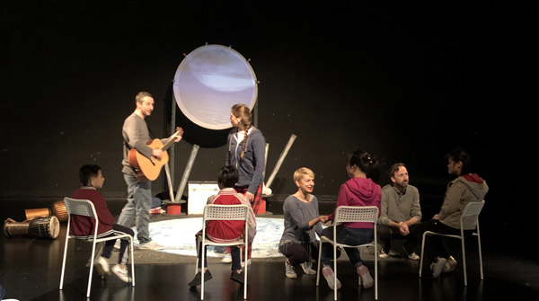 Diandian (first from left) attends the show Moon Song by Bamboozle. [Photo by LIN SHUJUAN/CHINA DAILY] |