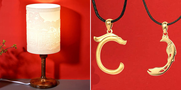 A 3D printing table lamp (left) and pendants of dragon and phoenix shapes, contributed by National Museum of China, will go on display at Shanghai Exhibition Center from May 19. [Photo/eastday.com] |