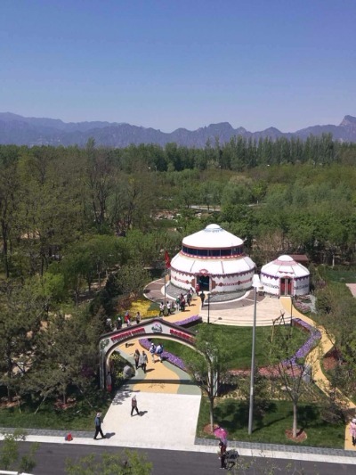 The Kyrgyz pavilion features a garden and two rooms built like yurts, which are traditional Kyrgyz tent dwellings.[Photo provided to China Daily] |